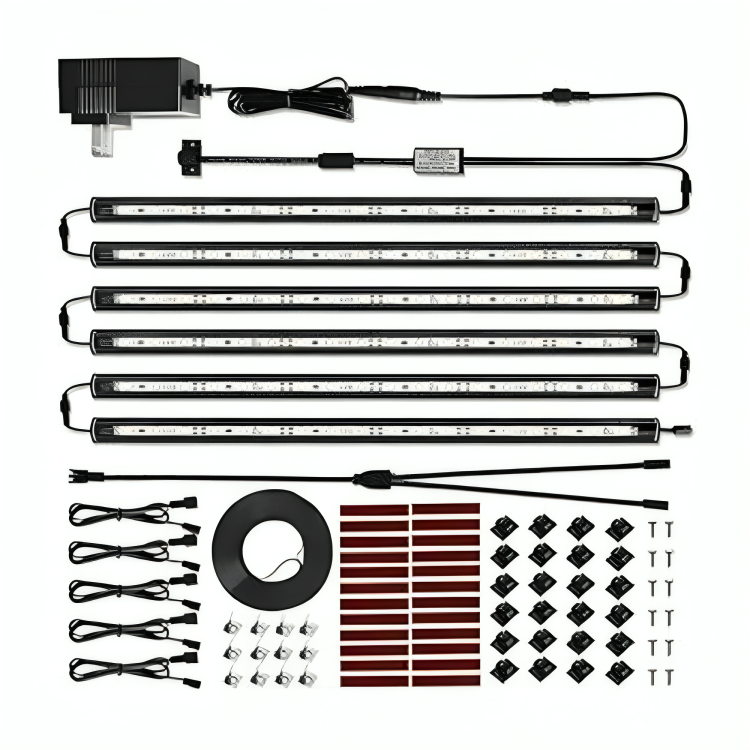 - DIY & Extendable Design. 2-way splitter, extension cables included for different layouts. 2 pcs extra add-on 12” LED light bars can be added into this safe lighting kit.
