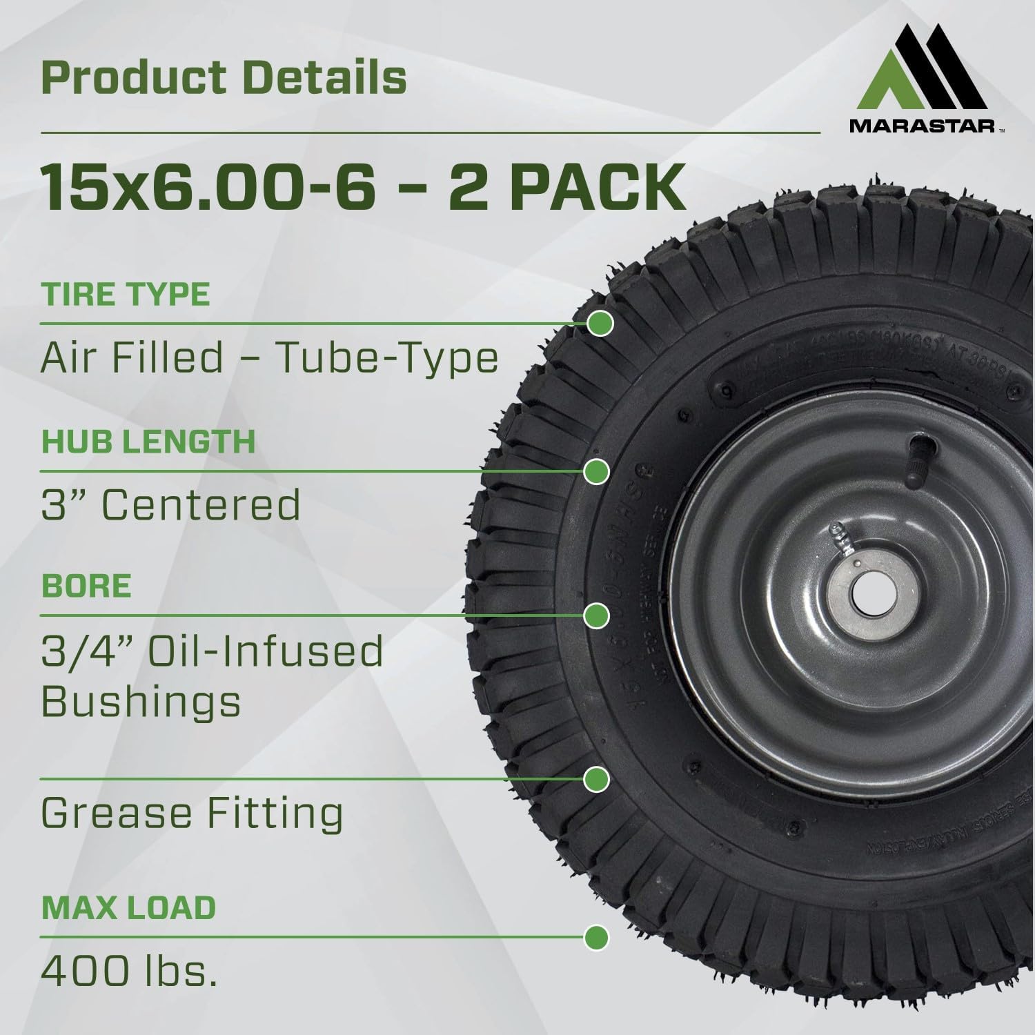 - Riding Lawn Mower Tire and Wheel Assembly: 2 pack – 15×6.00-6 Turf Saver Tread Pneumatic Tire, 4 Ply rating