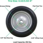 • 4.10/3.50-4″ (10.3″ diameter) with a 2.25″ offset hub and 3/4″ ball bearings.