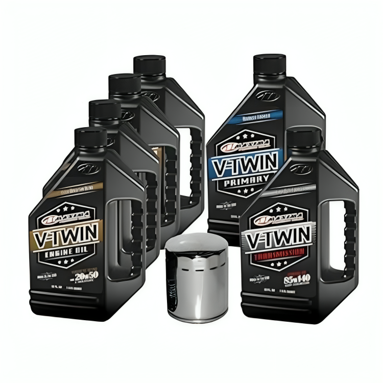 • The V-Twin Complete Engine Oil Change Kit includes 4 Quarts of Maxima V-Twin Synthetic Blend 20w50 Engine Oil, 1 Quart (32 oz.) Maxima V-Twin Primary Oil, 1 Quart Maxima V-Twin 85w140 Transmission Oil, and a Chrome HiFloFiltro HF171C Premium Oil Filter