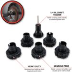 - Includes a holder with a 1/4″ shaft and five sanding pads that accepts up to 1/2″ studs