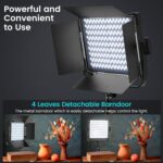 - 【Adjustable Tripod Stand & 360° Rotate Angles】The light stand is solidly built by aluminum alloy and can extend from 33″ to 79″ (84 to 200cm), the U-shaped mounting bracket allows you to adjust the light panel 360° angle for desired light positioning. The metal barndoor helps shape the light and control light spill, which is easily detachable.