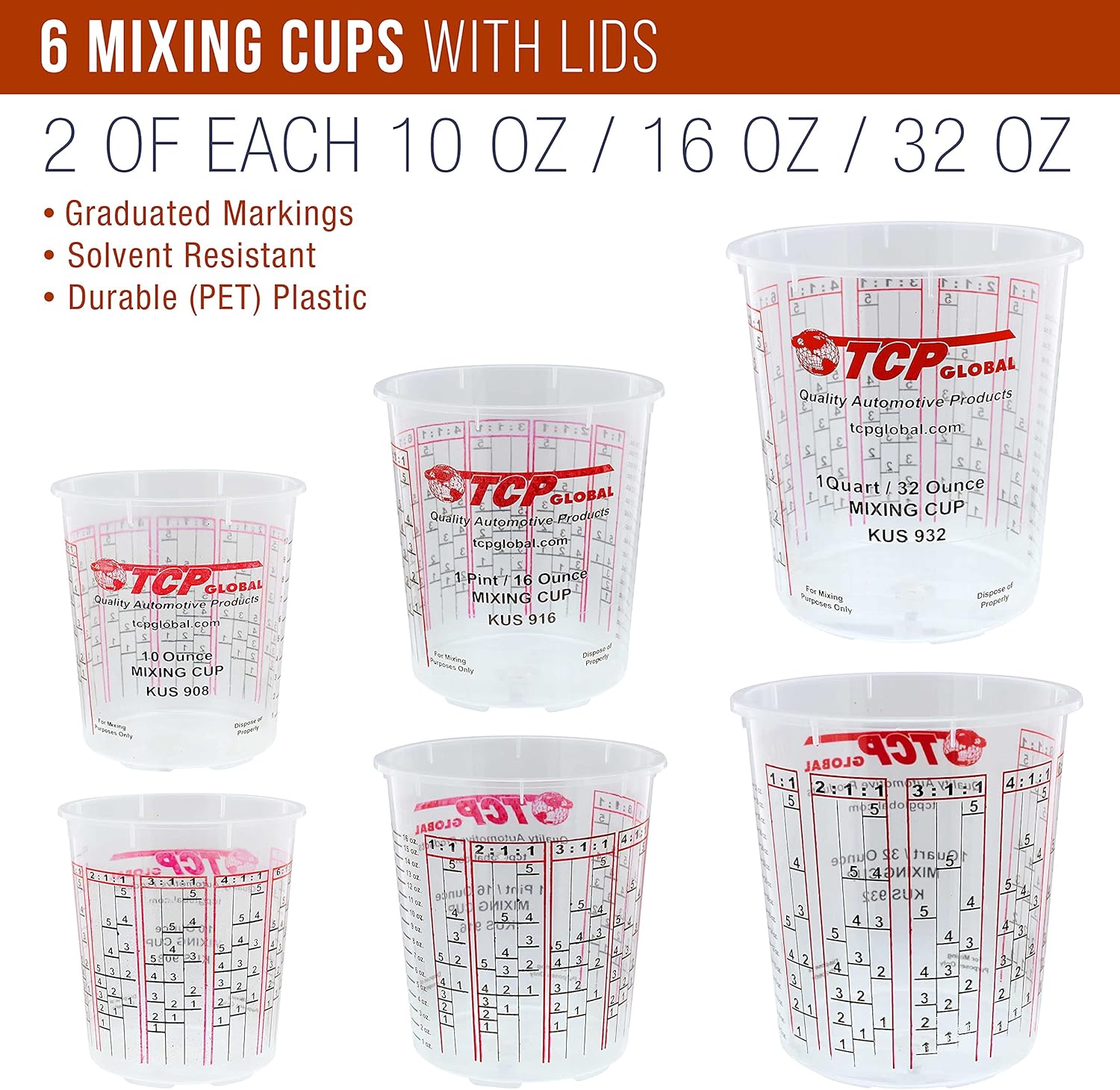 - Comes With 2-ea 32-Oz Mix Cups & Lids, 2-ea 16-Oz Cups & Lids, 2-ea 8-Oz Cups & Lids